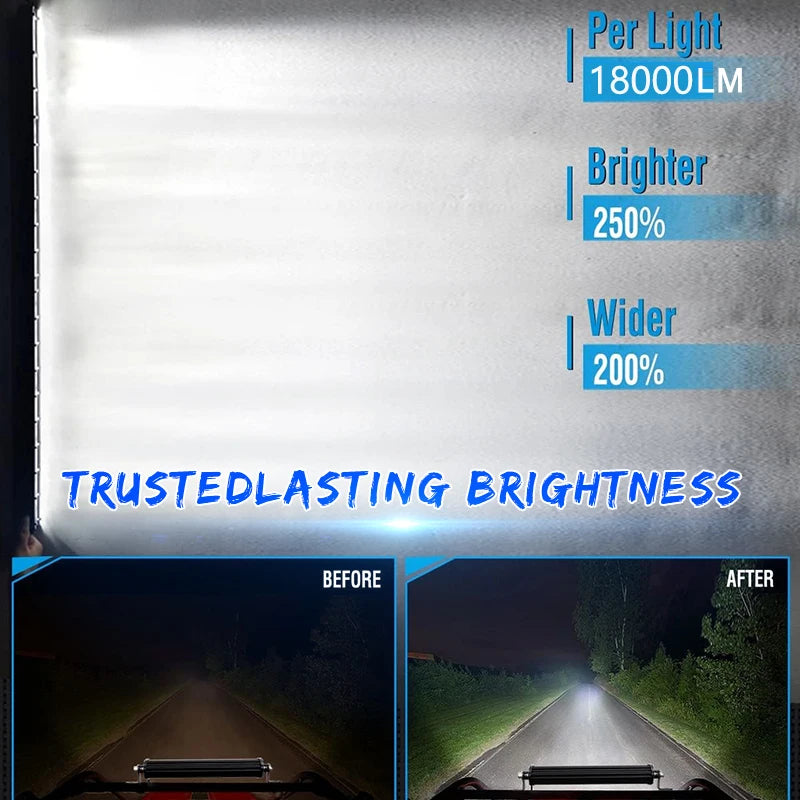 CUSTOMIZED HALF CONVEX REFLECTOR: The half convex reflector lessens the stray light emission, and produces a more precise driving beam pattern. Equipped with both a hyper spot reflector providing long distance reach and a hyper flood reflector for a wide cast of light, 20 inch LED light bar delivers 18,000LM with combo beams, nothing will stand in your way.
