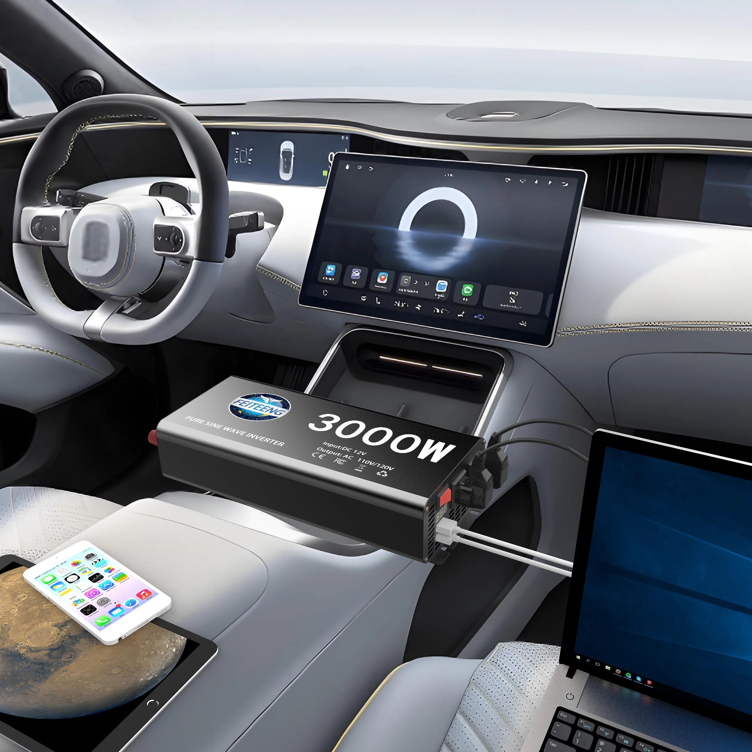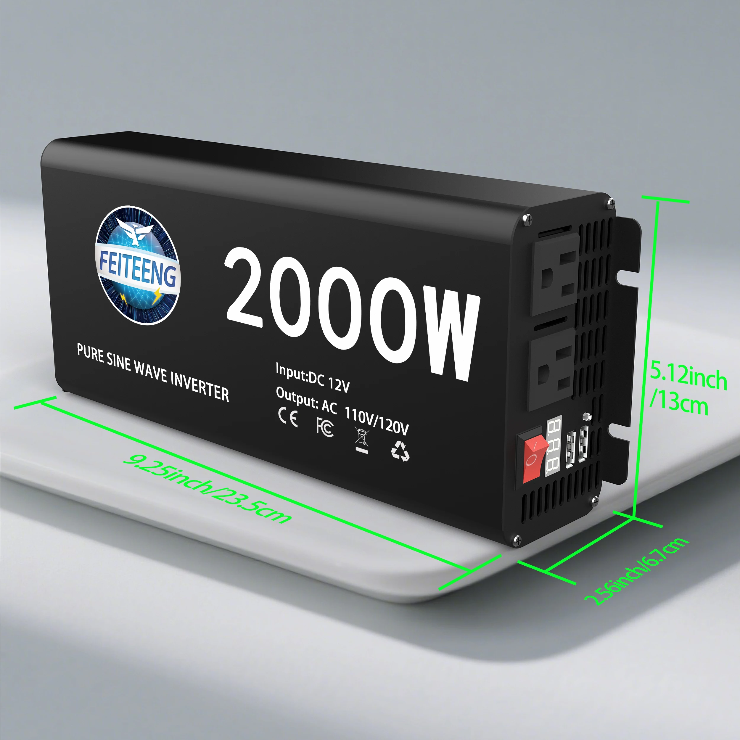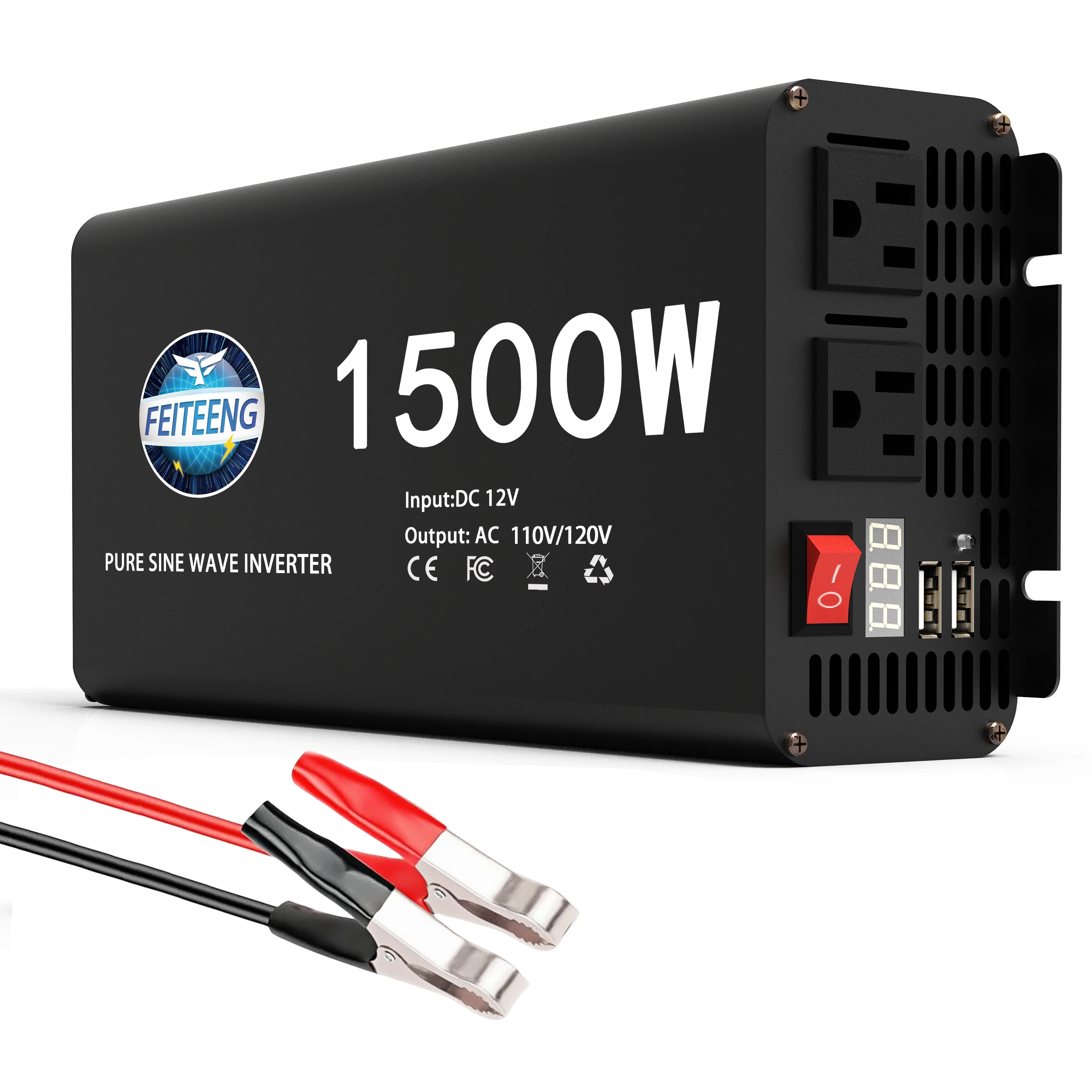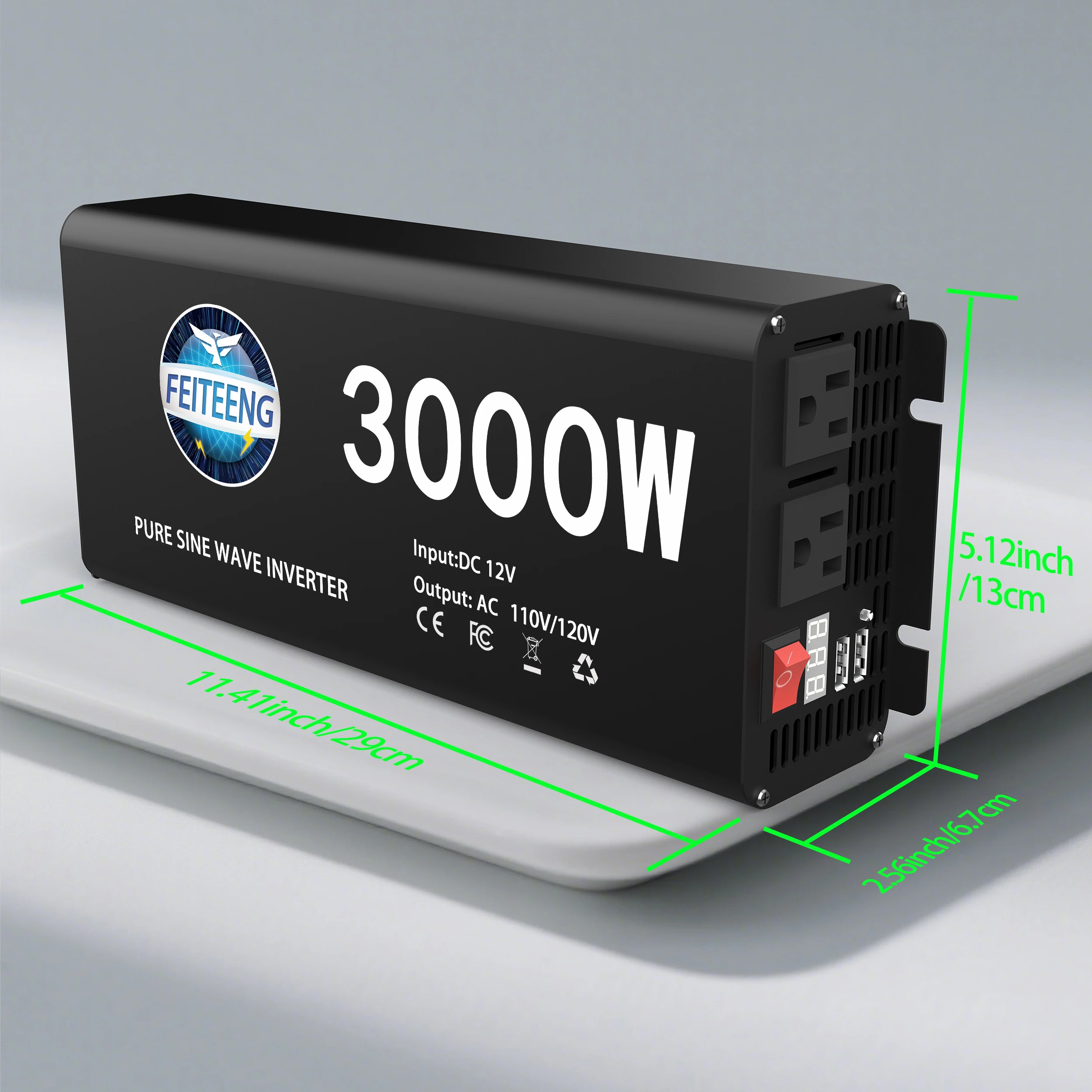3000W Pure Sine Wave Power Inverter 12V to 110V 120V AC with Outlets USB Type-C for RV Camping Battery Backup