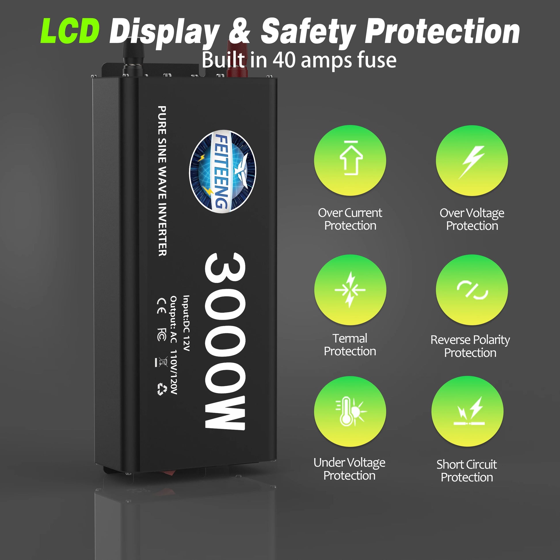 Multiple safety protections: overload/short circuit/over temperature/high and low voltage protection