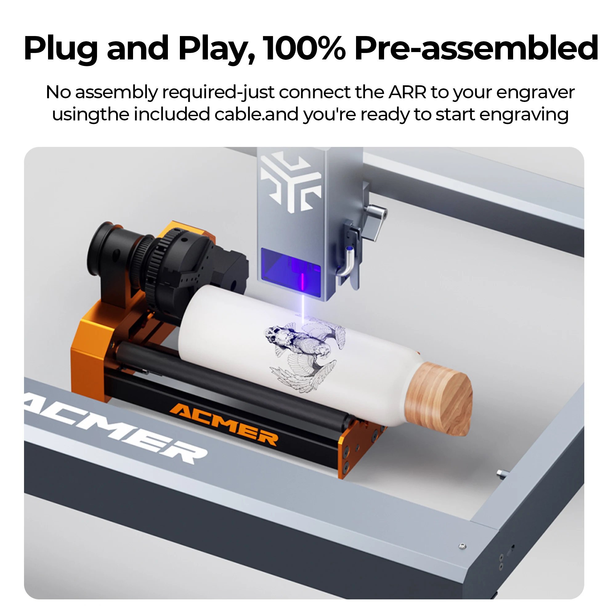No assembly required ————just connect the ARR to your engraver using the included cable