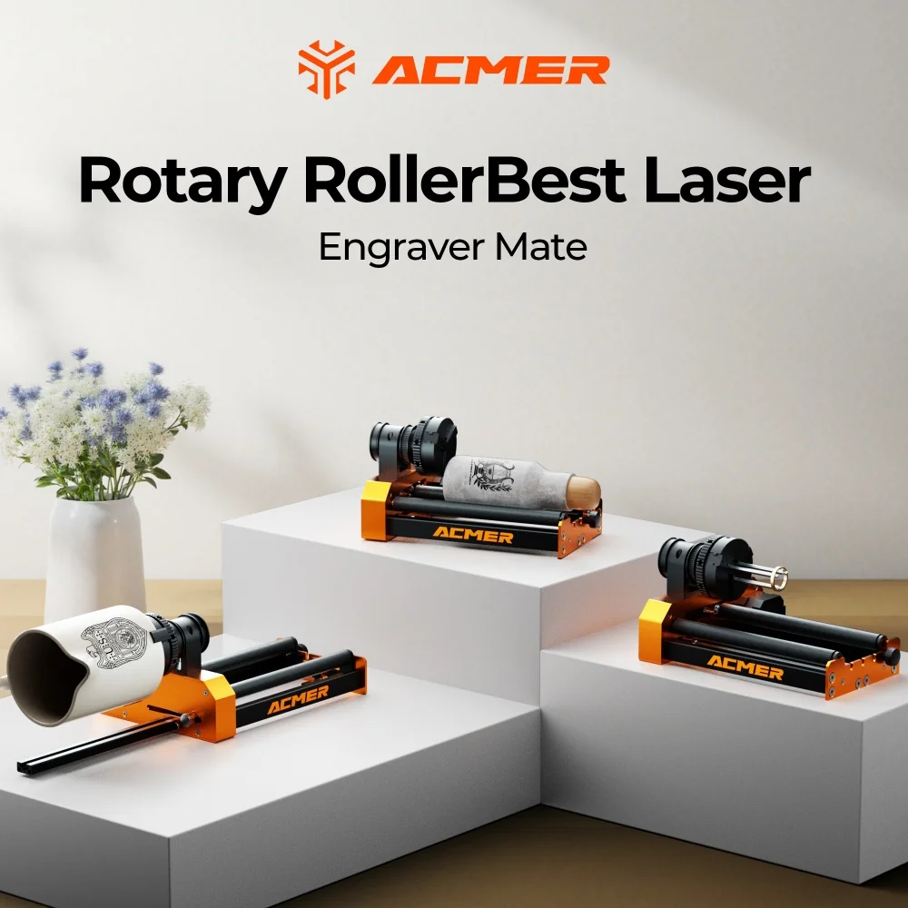 - Durable Materials and Practical Design - Made of aluminum profiles to ensure long-term and reliable use. Compared with other roller rotary attachments, ACMER M4 supports engraving on extra-long cylinders and spheres (such as beverage cans, eggshell cups, goblets, wine bottles, baseballs, baseball bats).