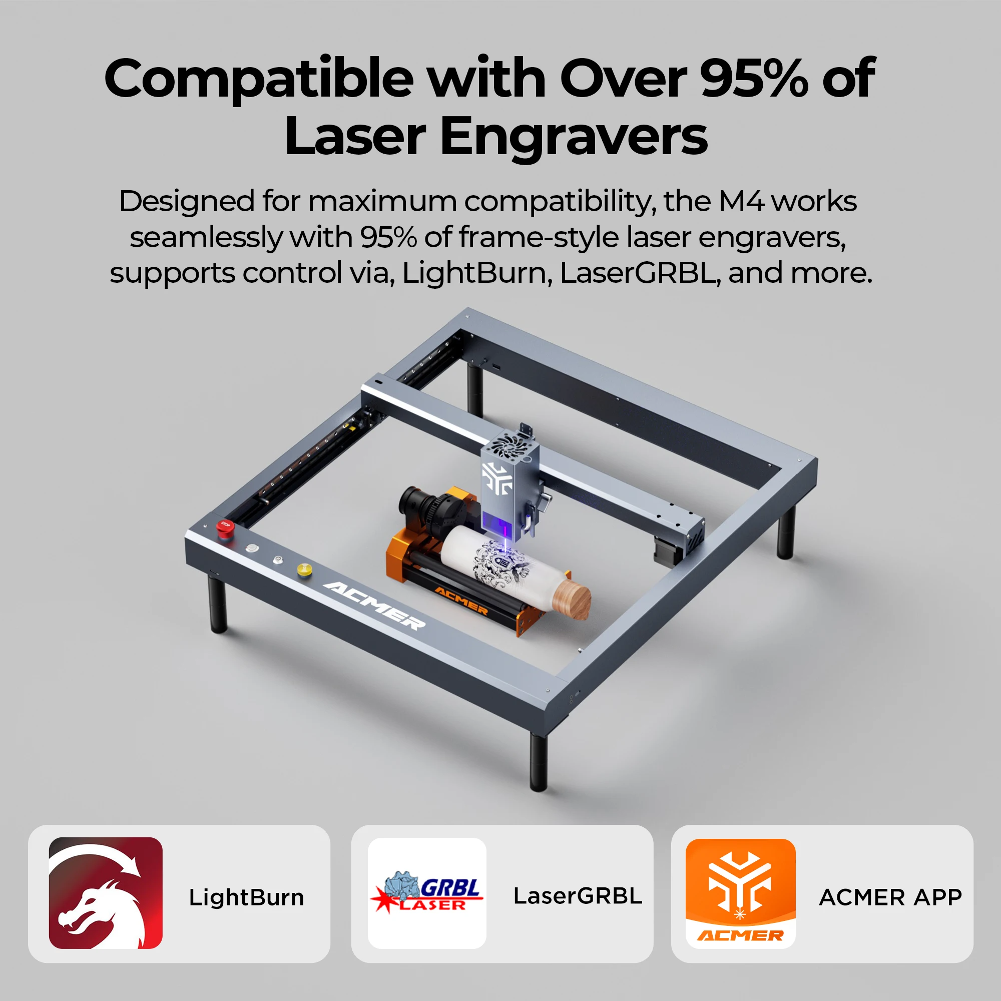 - Wide Compatibility - ACMER M4 is compatible with all models of ACMER machines and most laser engravers on the market. Also compatible with LaserGRBL and LightBurn.