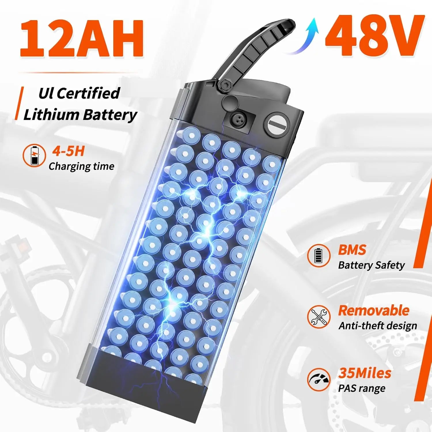 - Power and range you can feel: a 500W brushless motor accelerates to 25 MPH, while a removable 48V 12Ah (576Wh) battery delivers up to 35 miles of PAS range and climbs 30° slopes with ease.