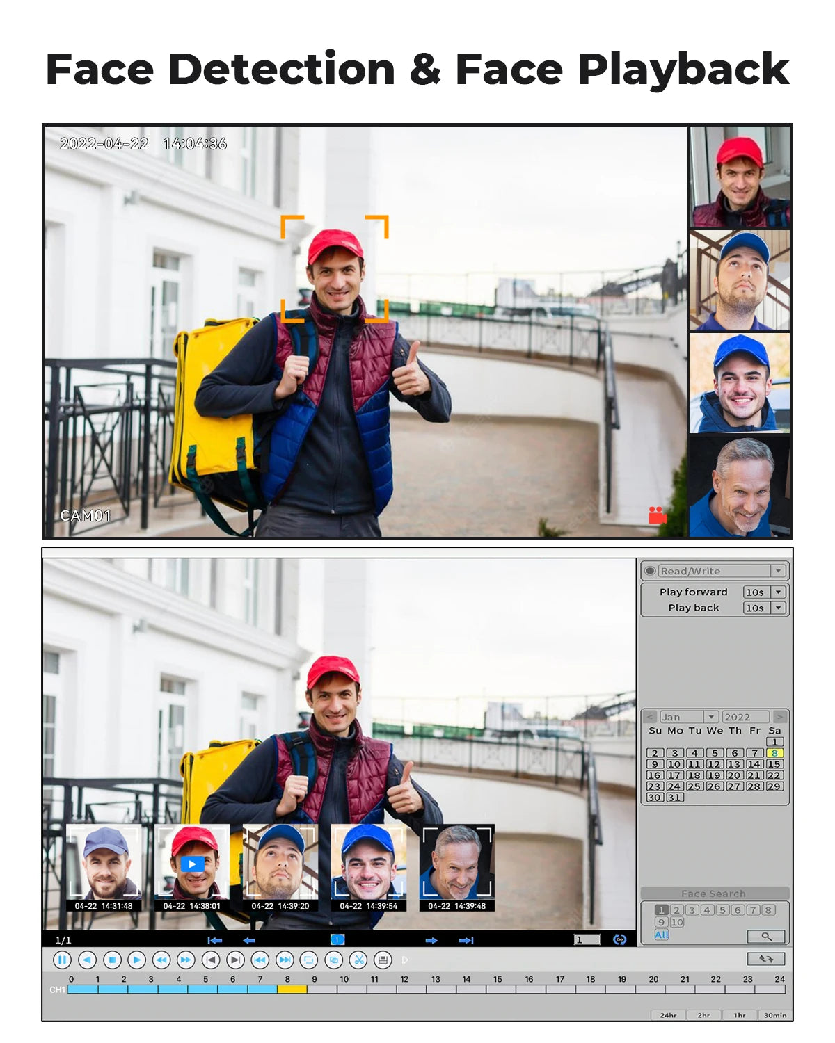 - AI-powered person detection with quick face playback lets you identify visitors fast, search clips by person, and minimize false alarms.