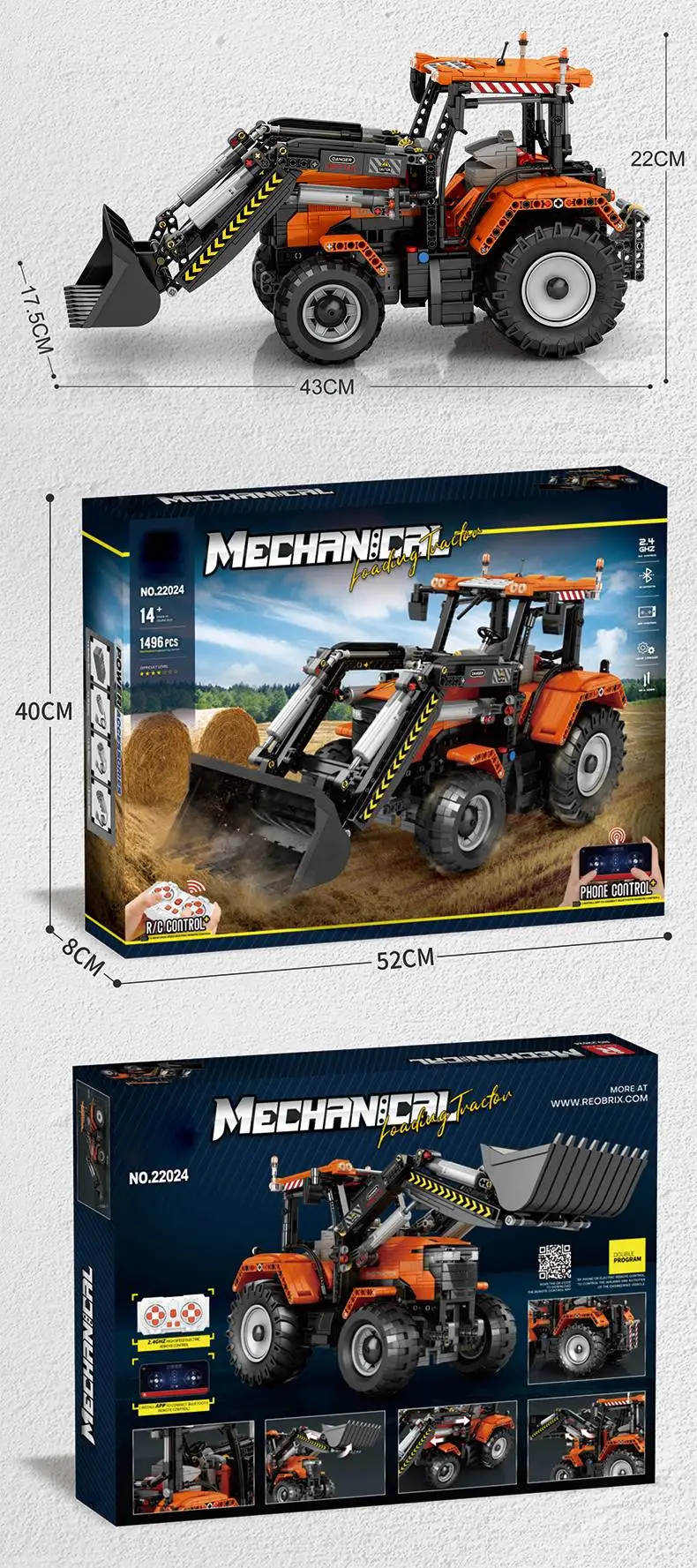 Loading Tractor Building Set for Adult w/Remote Control, Architectural Model Kit, STEM Engineering Building Toy for Teen,1496pcs