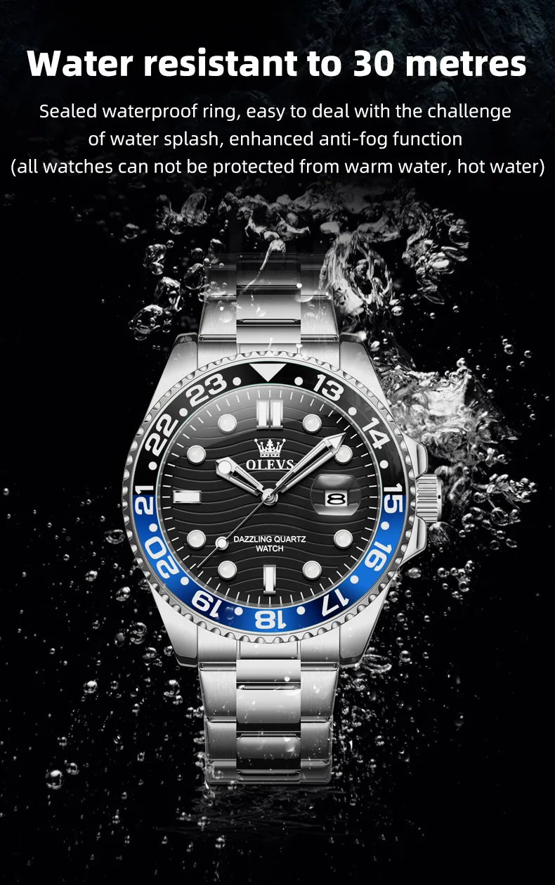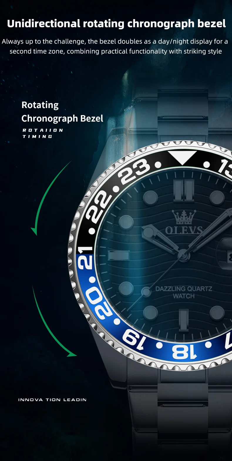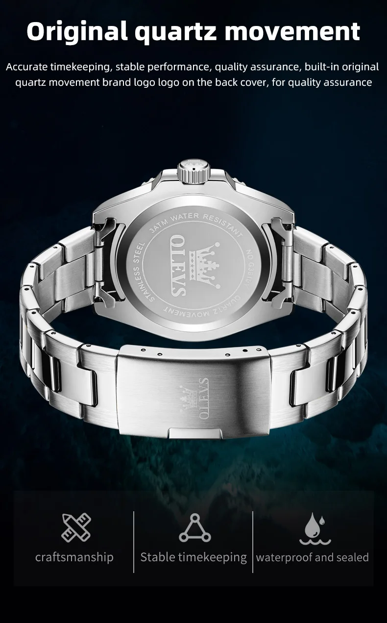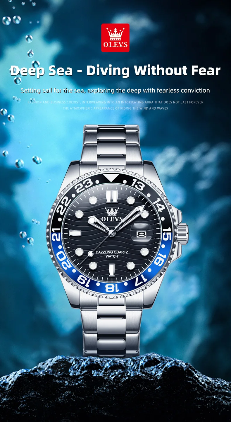 OLEVS 3610 Men Watch Fashion Original Diving Series Waterproof Date Rotating Dial Stainless Steel Luxury Brand Men Quartz Watch