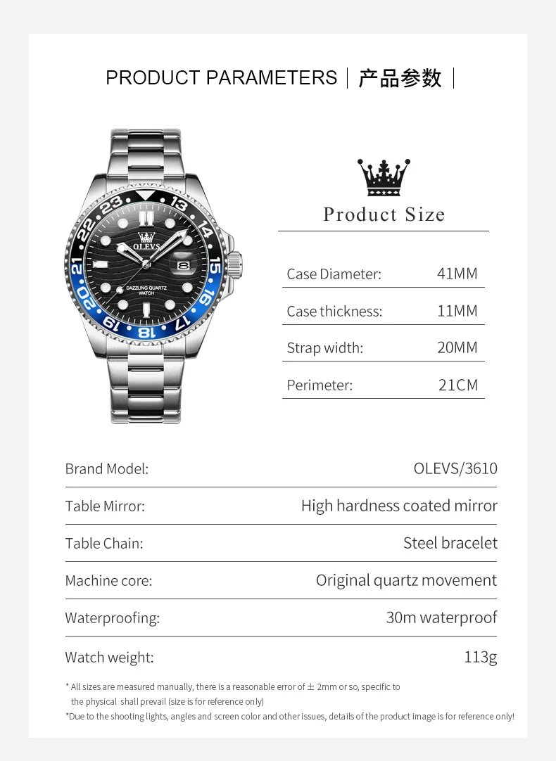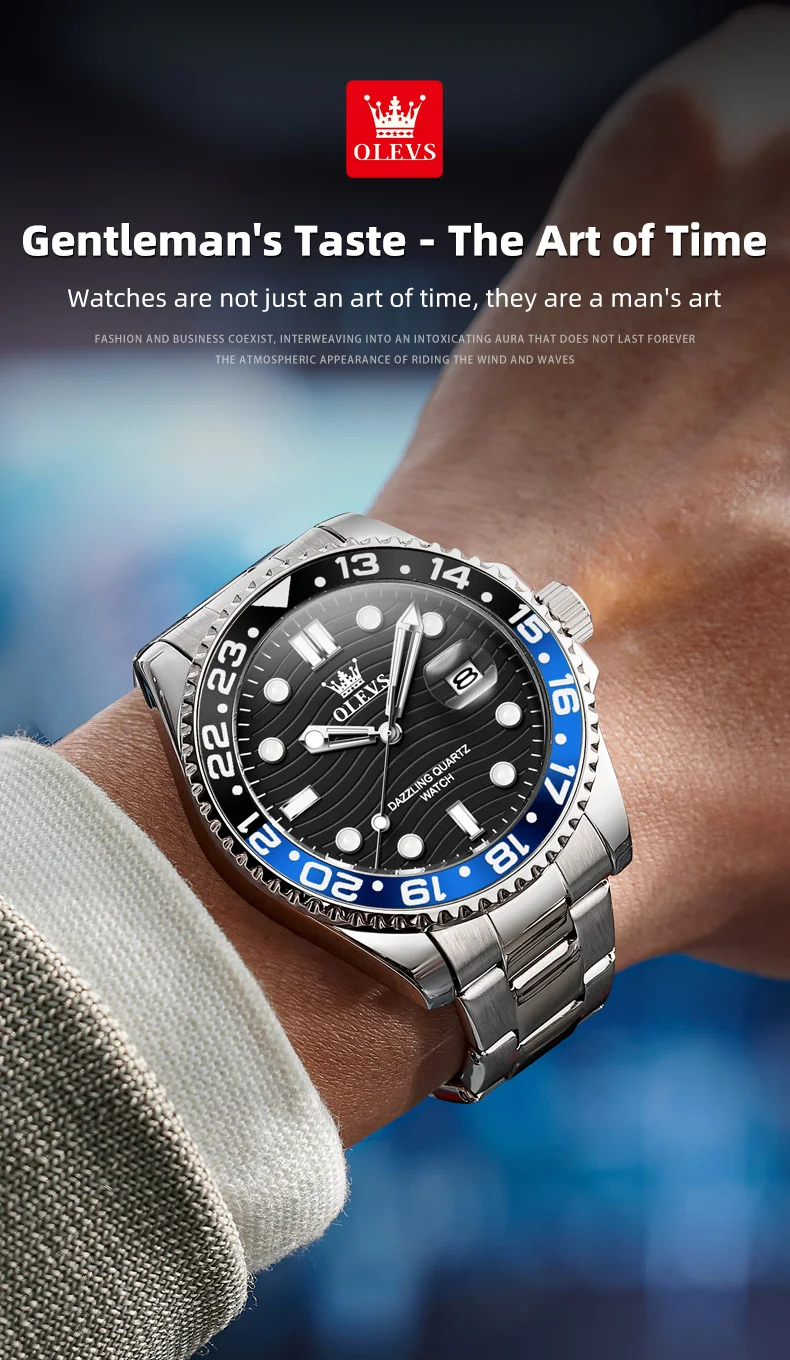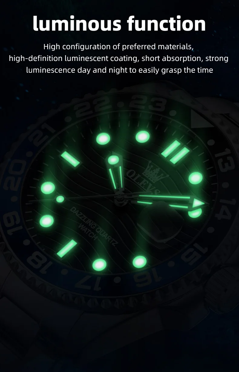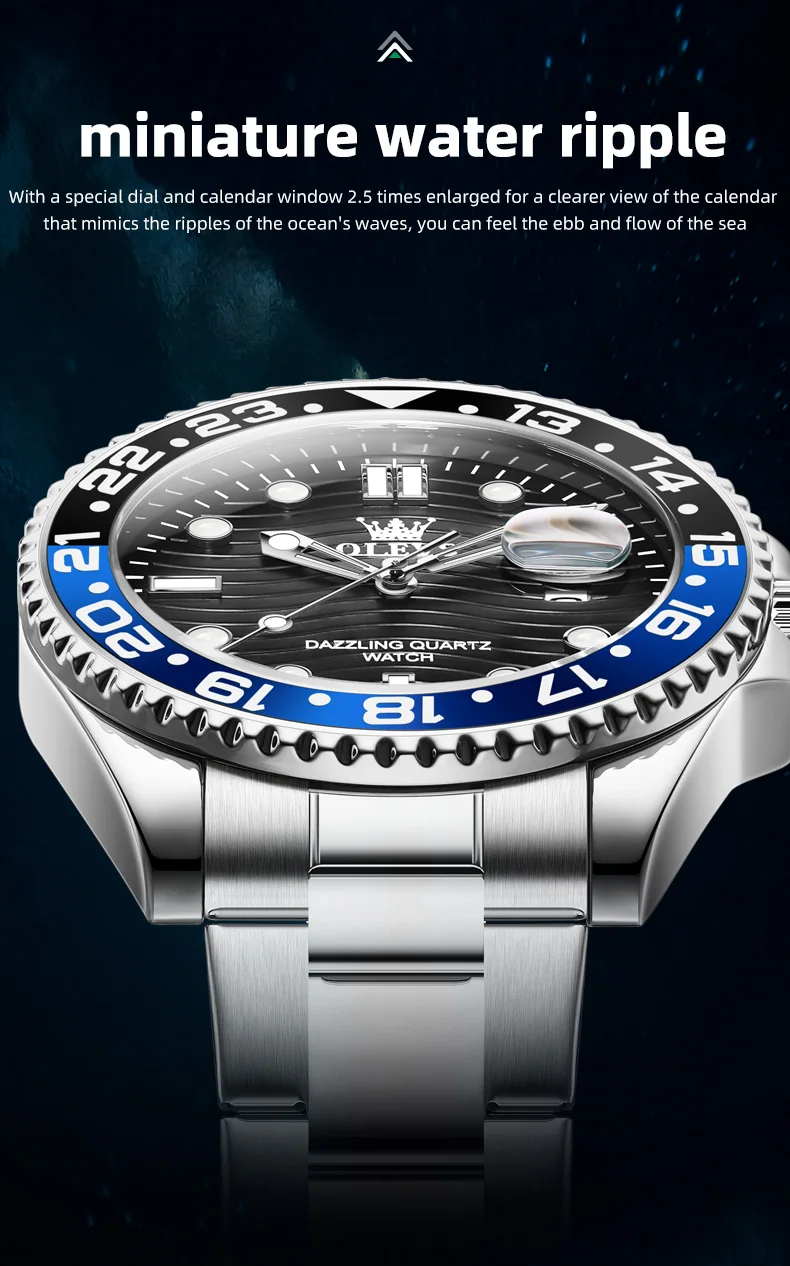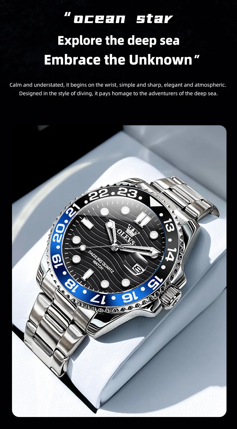 OLEVS 3610 Men Watch Fashion Original Diving Series Waterproof Date Rotating Dial Stainless Steel Luxury Brand Men Quartz Watch
