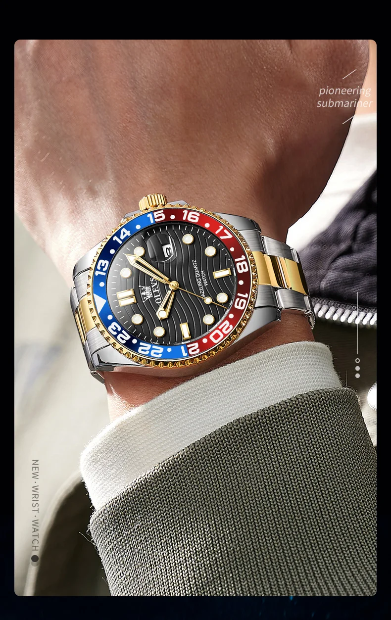 Feature: Shock Resistant,Luminous,Auto Date,Complete Calendar,DIVER,Water-Resistance,Luminous Hands