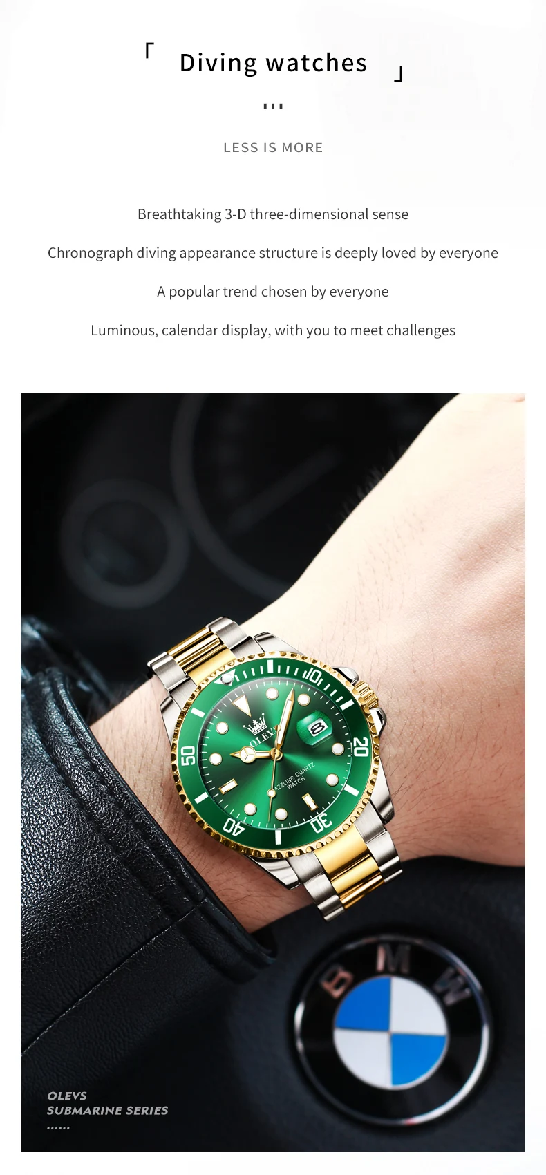OLEVS 5885 Business Men Watch Diving Quartz Watch Luxury Stainless Steel Waterproof Luminous Automatic Date Men Original Watch