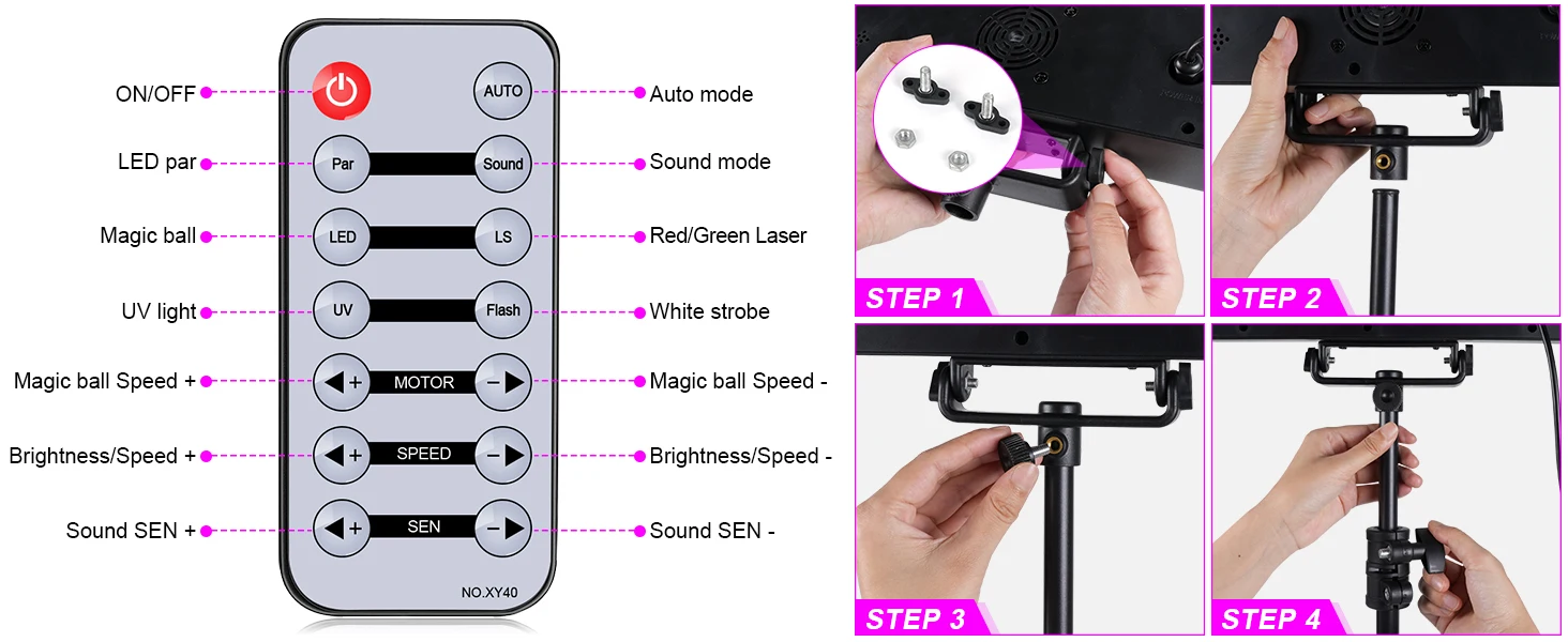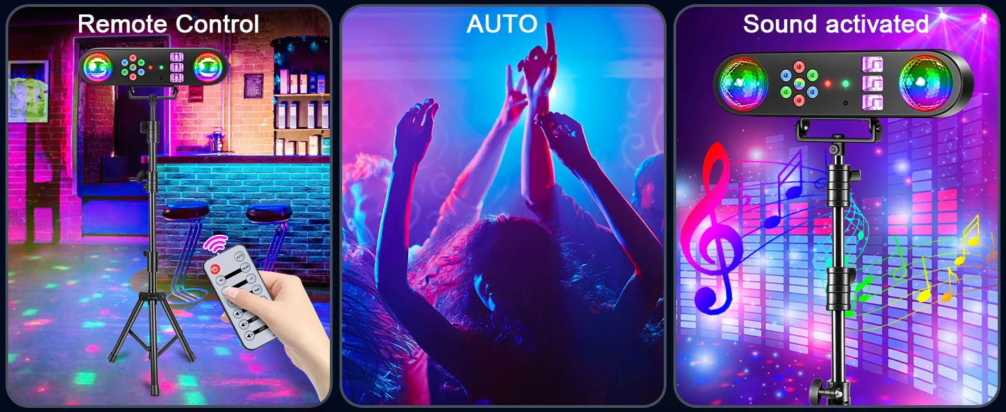 U'King Mini 5IN1 Bracket Effect Light Remote Control Mobile Stage Light Sound Control Strobe Magic Ball Light for DJ Show Party